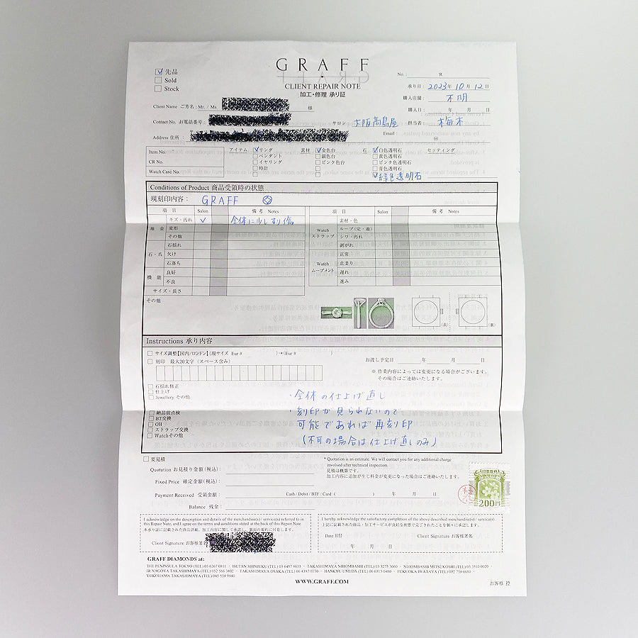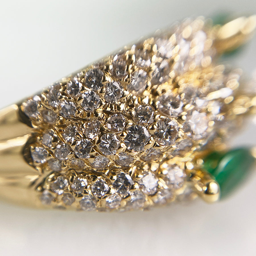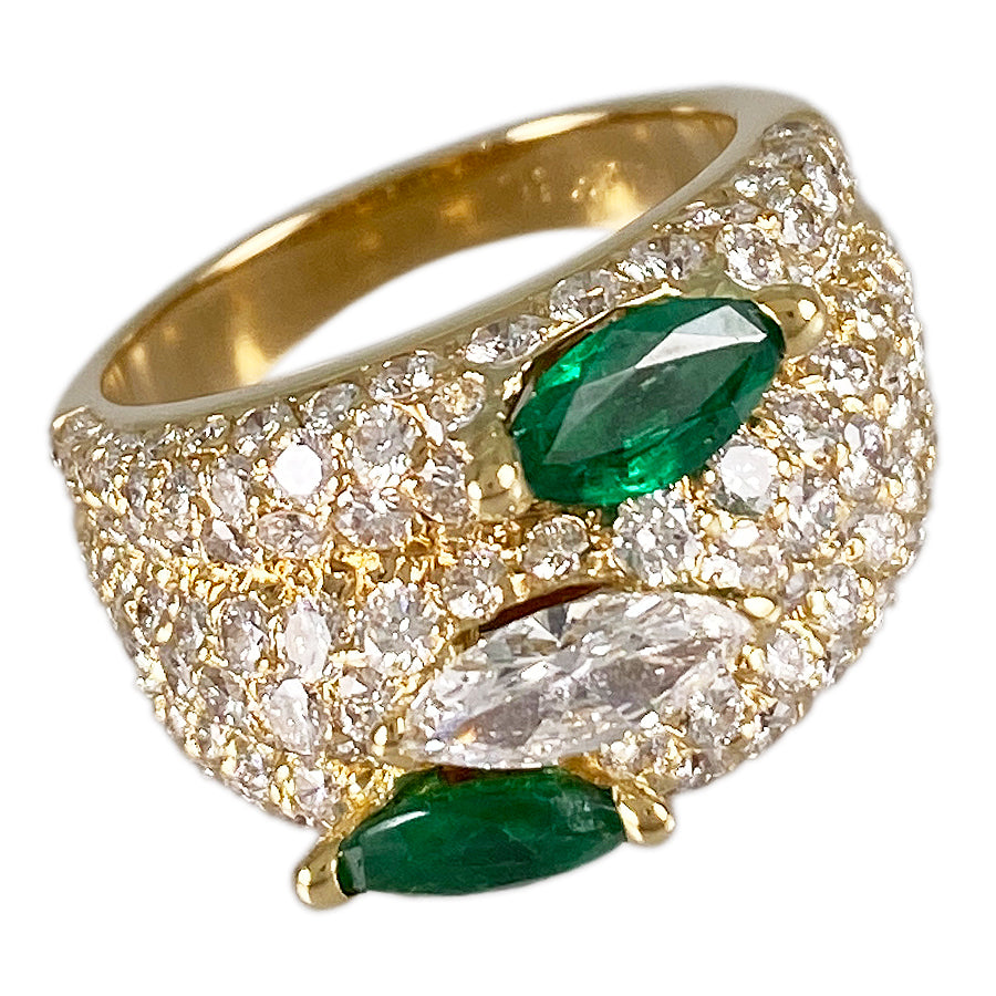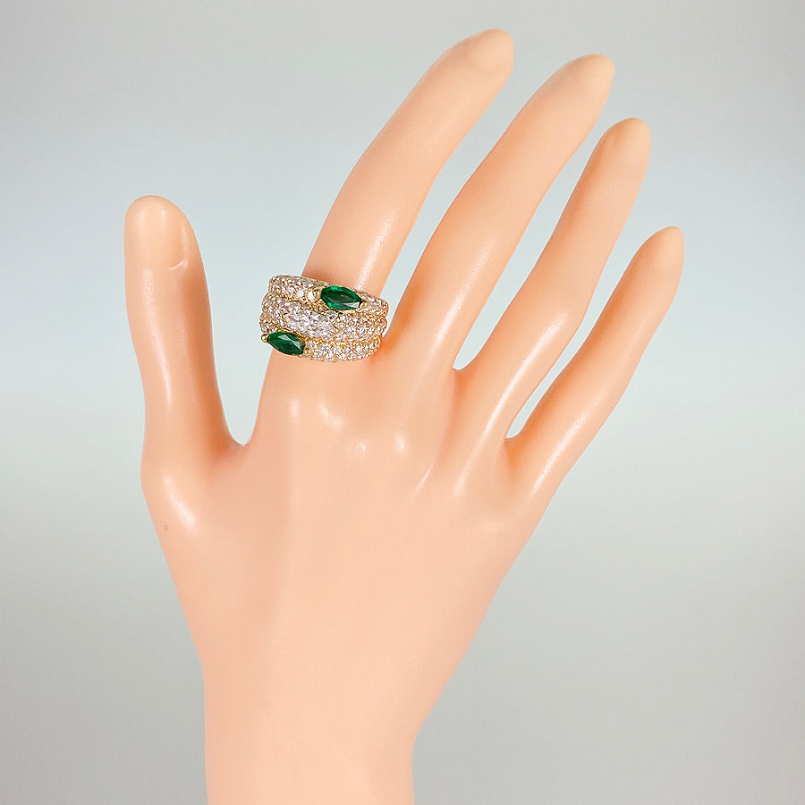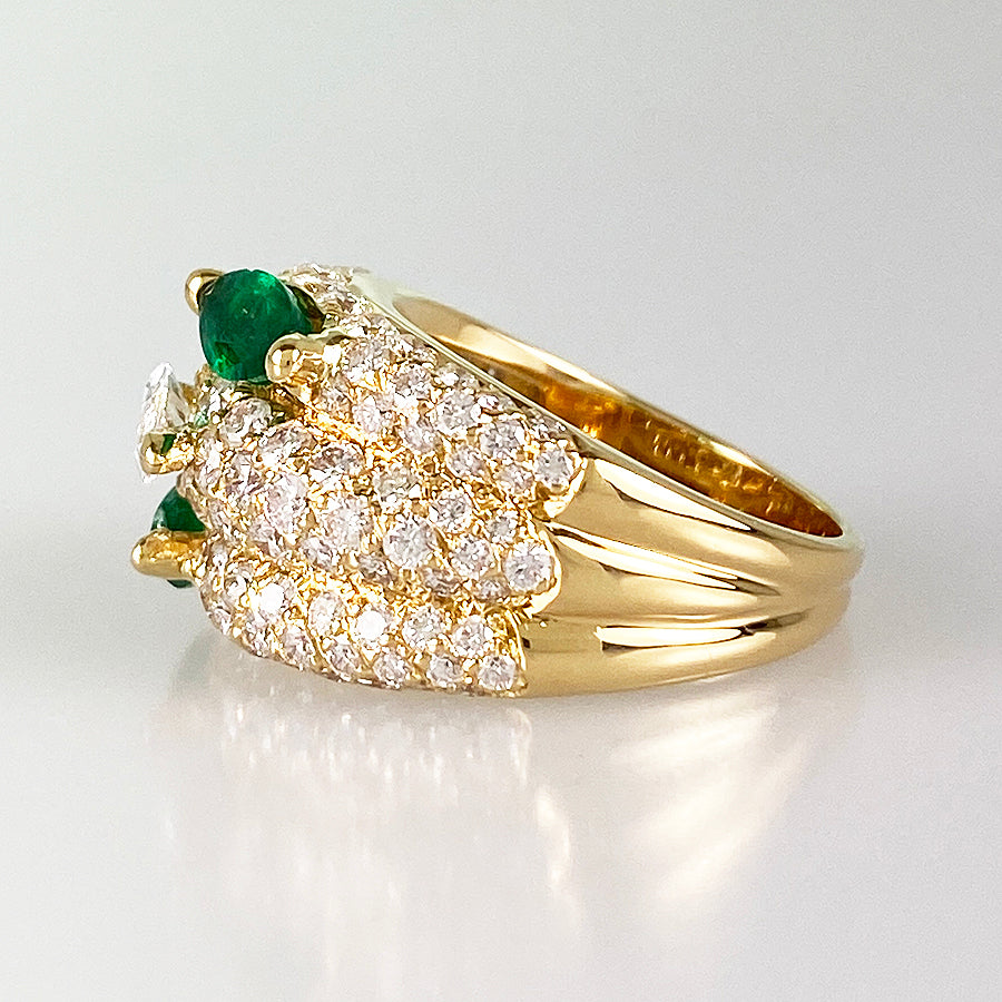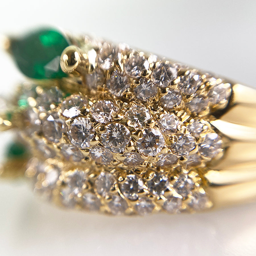 SizeJP:15 SizeUS:7.5 SizeEU:55 SizeUK:P Ring width:3.2mm-13.5mm Weight:12.1g Emerald:刻印なし/カラット数不明 diamond:刻印なし/カラット数不明