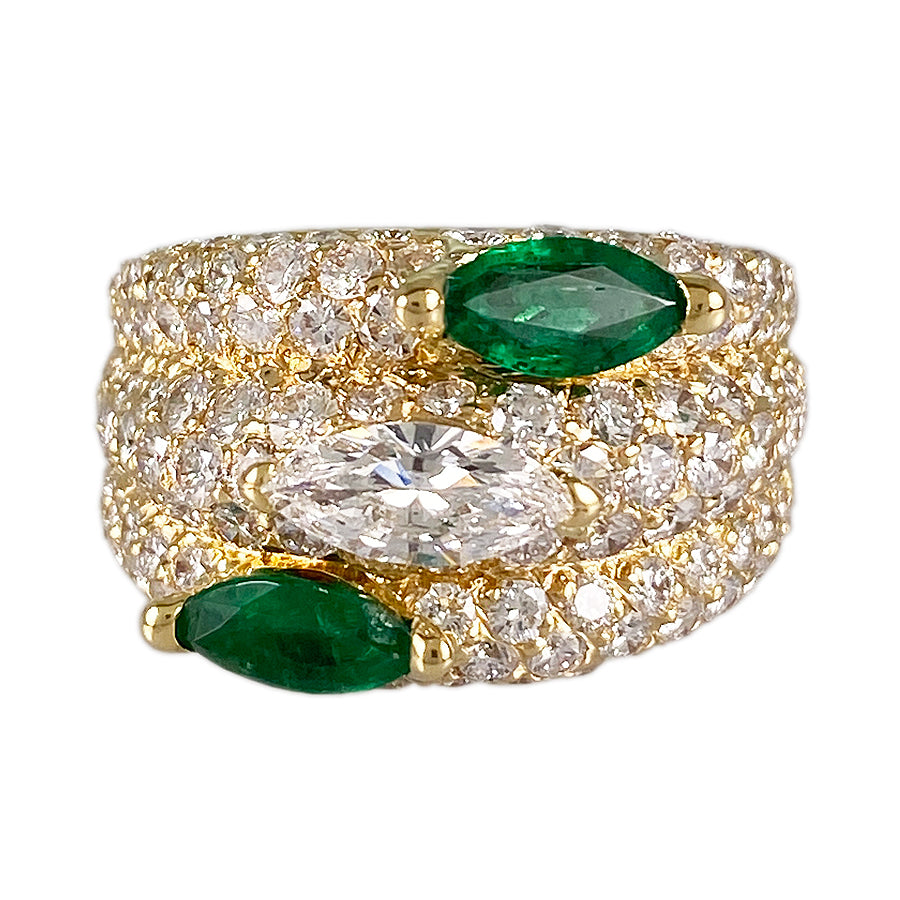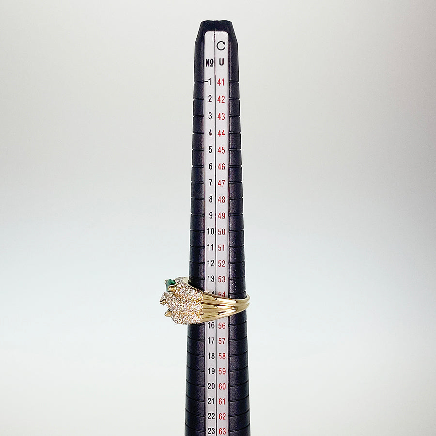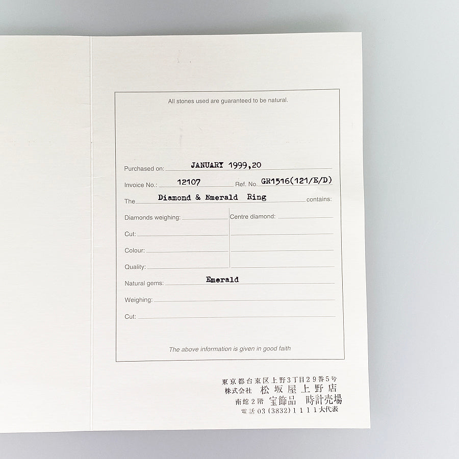 SizeJP:15 SizeUS:7.5 SizeEU:55 SizeUK:P Ring width:0.1"-0.5" Weight:12.1g Emerald:Unmarked/Unknown carat count Diamond:Unmarked/Unknown carat count