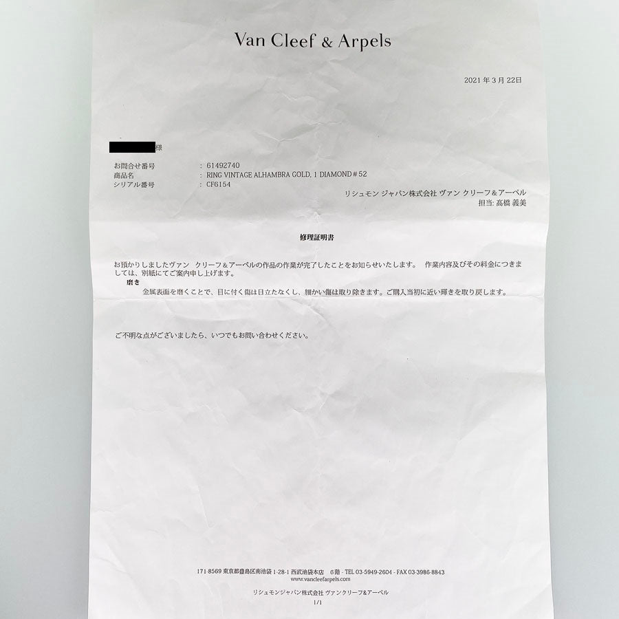Repair certificate (polished/March 2021)