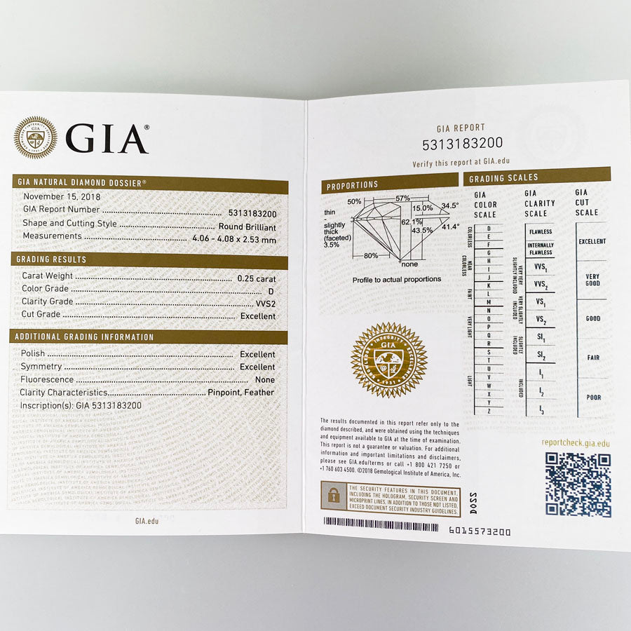 Diamond: D/VVS2/Excellent (see GIA certificate)