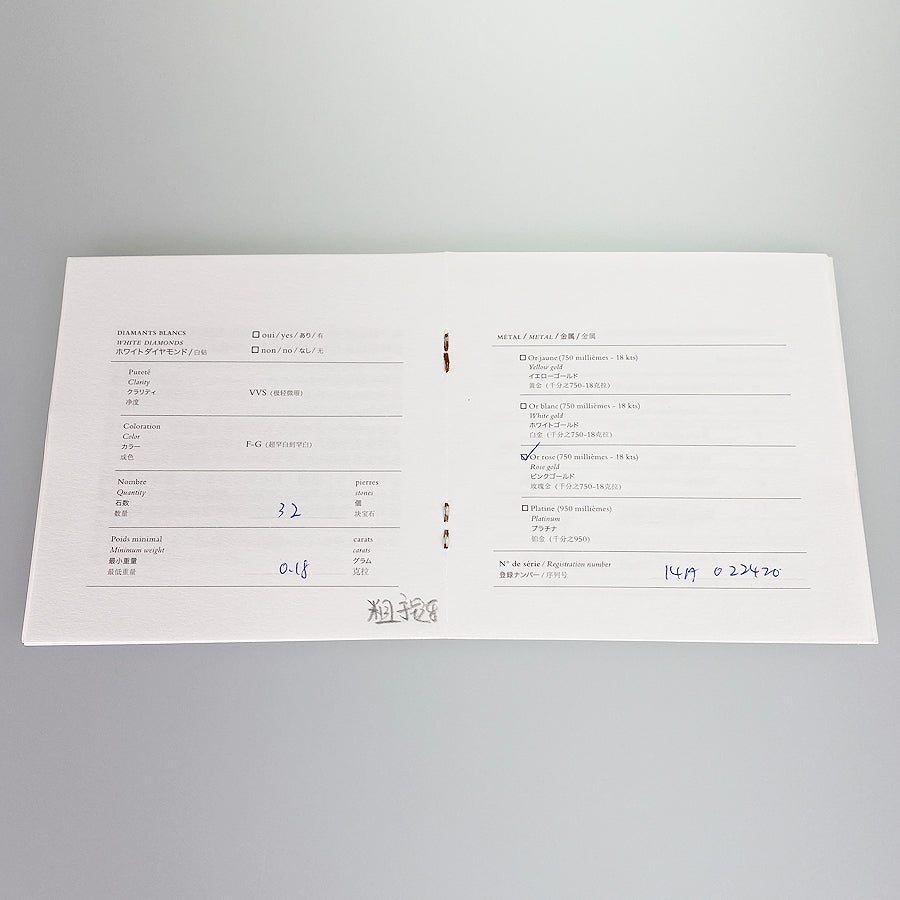 Manufacturer's sales certificate (HERMES ASIA PACIFIC LIMITED September 2015, serial number incorrect)