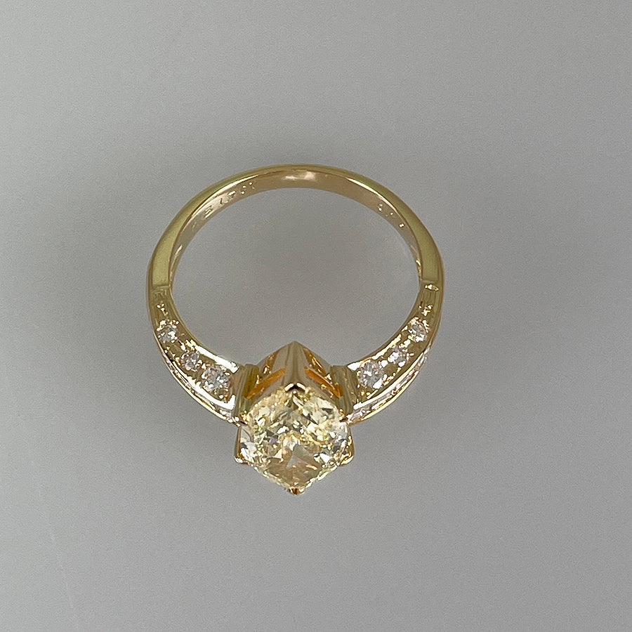 SizeJP:9 SizeUS:5 SizeEU:49 SizeUK:J 1/2 Ring width:0.1"-0.6" Weight:3.7g Yellow diamond: 1.767ct Diamond: 0.79ct