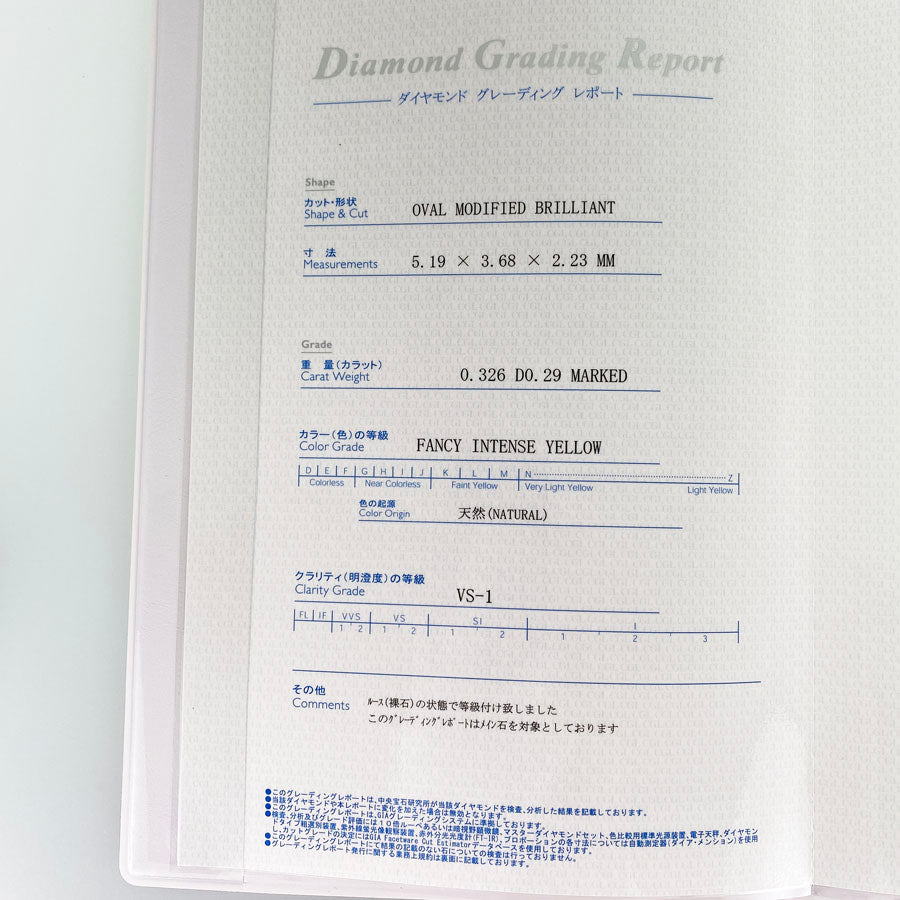- Ring size: 9 (JP) / 5 (US) / 49 (EU) Ring width: 0.1 "-0.3" Yellow diamond: 0.326ct Diamond: 0.29ct Weight: 3.2 g