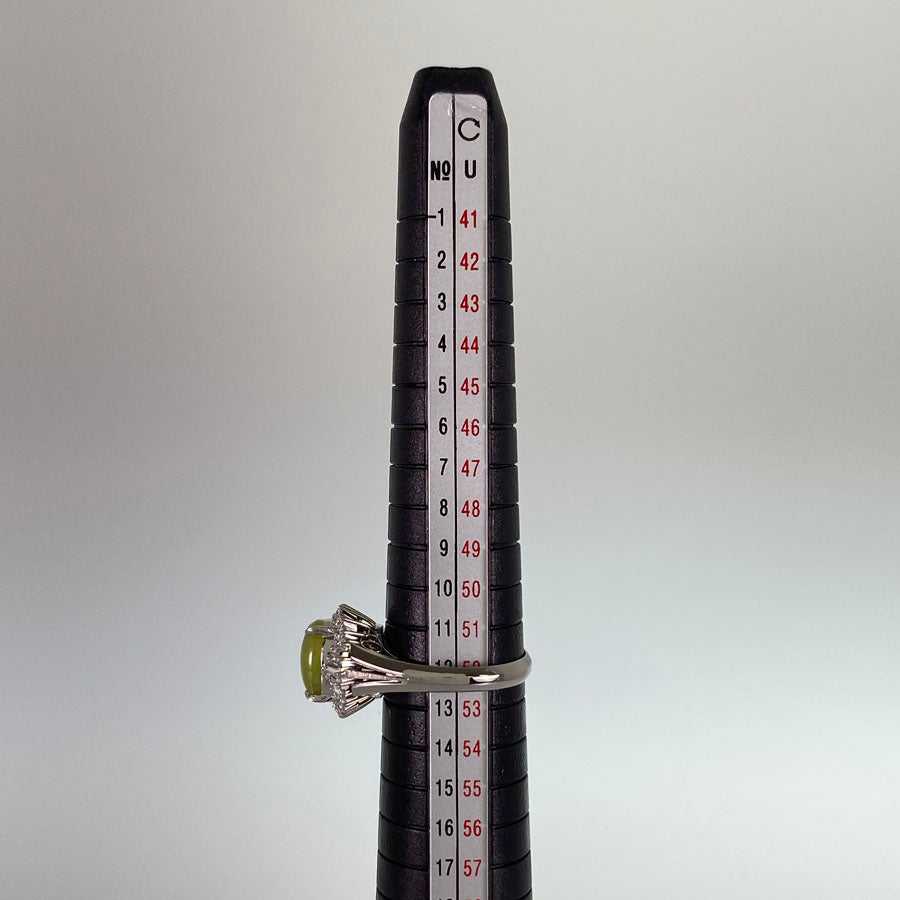 SizeJP:12 SizeUS:6 SizeEU:52 SizeUK:M Ring width:0.1"-0.5" Weight:6.7g Chrysoberyl Cat's Eye:2.95ct Diamond: 0.58ct