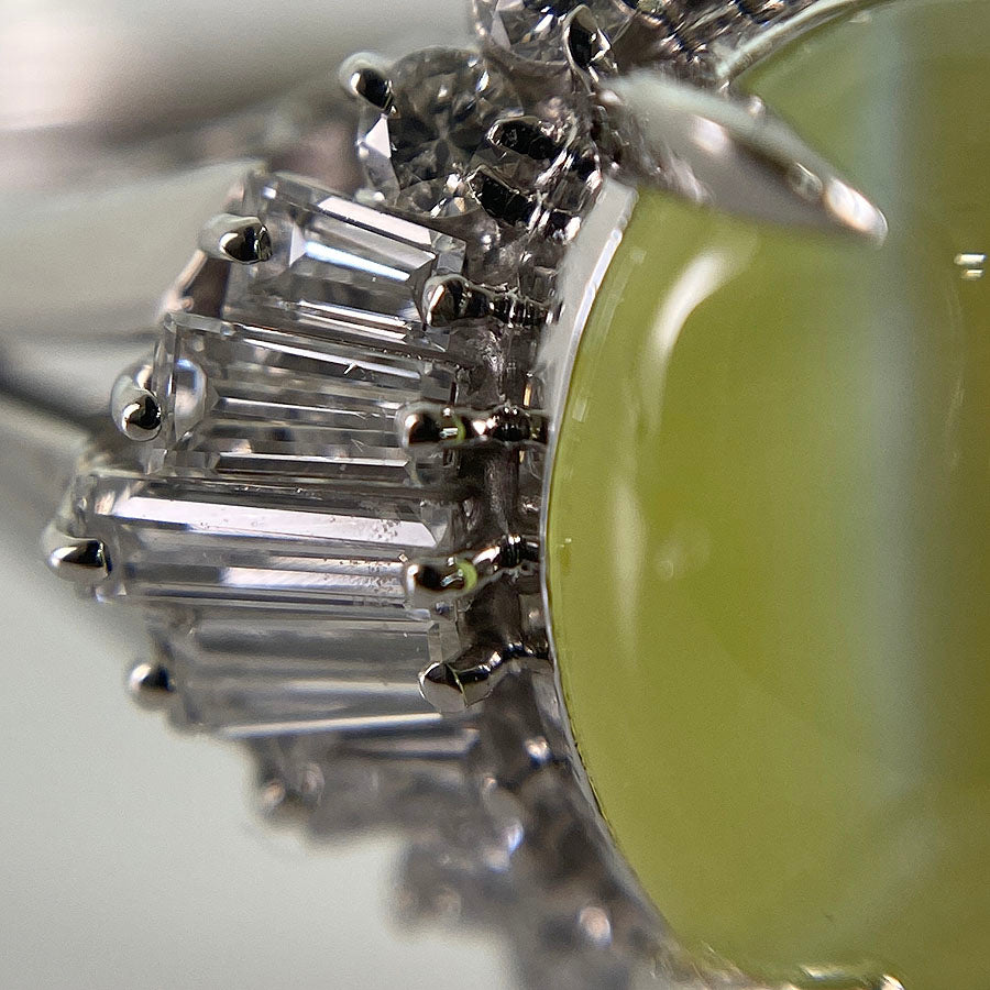 Chrysoberyl Cat's Eye/Diamond: Chrysoberyl Cat's Eye has some chips.