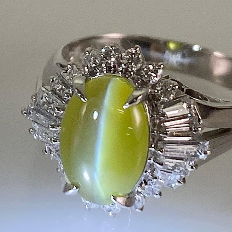 Ring Platinum Chrysoberyl Cat's Eye Diamond