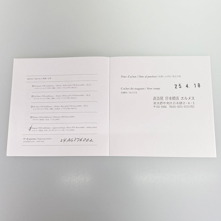 Manufacturer's sales certificate (Takashimaya Nihonbashi store/April 2018)