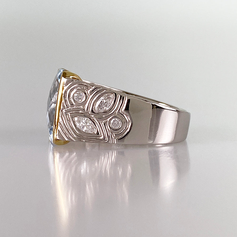 Ring Platinum Yellow gold Aquamarine Diamond