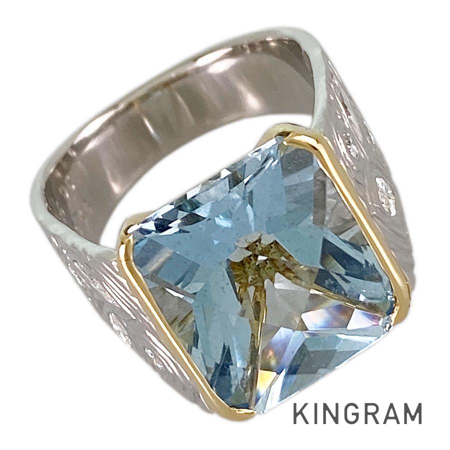 SizeJP:11 SizeUS:5.5 SizeEU:51 SizeUK:L Ring width:5mm-13.3mm Weight:12.2g Aquamarine:7.85ct diamond:0.51ct