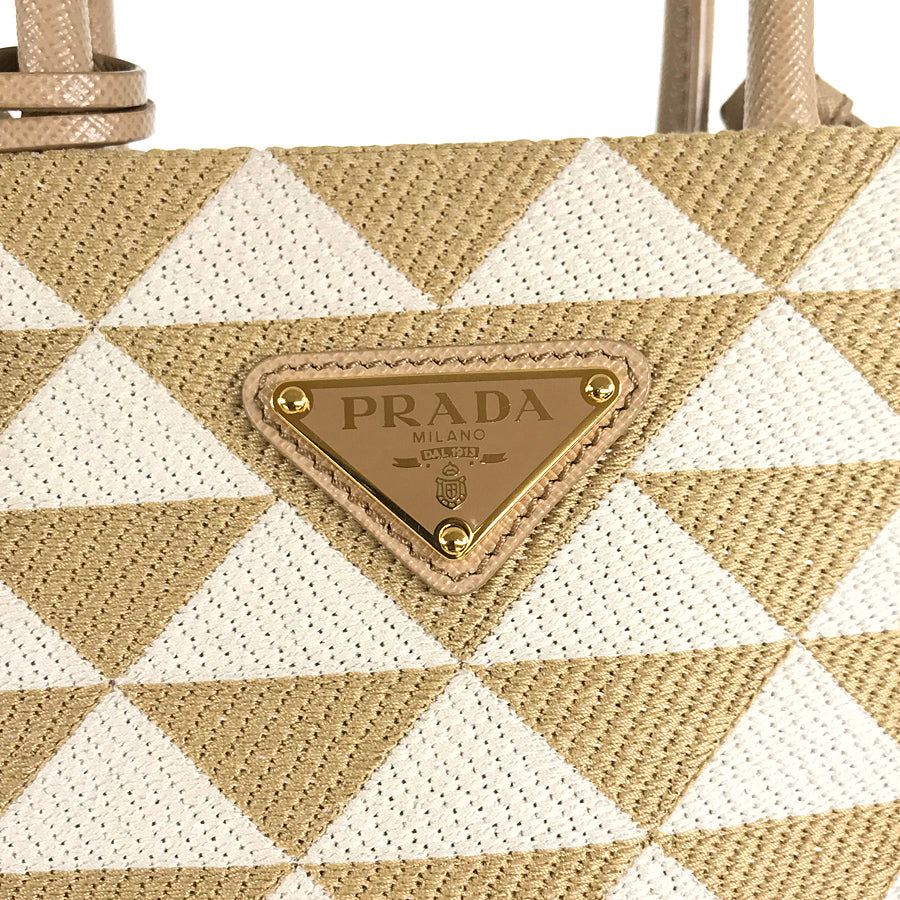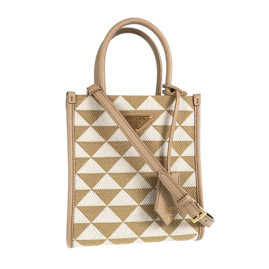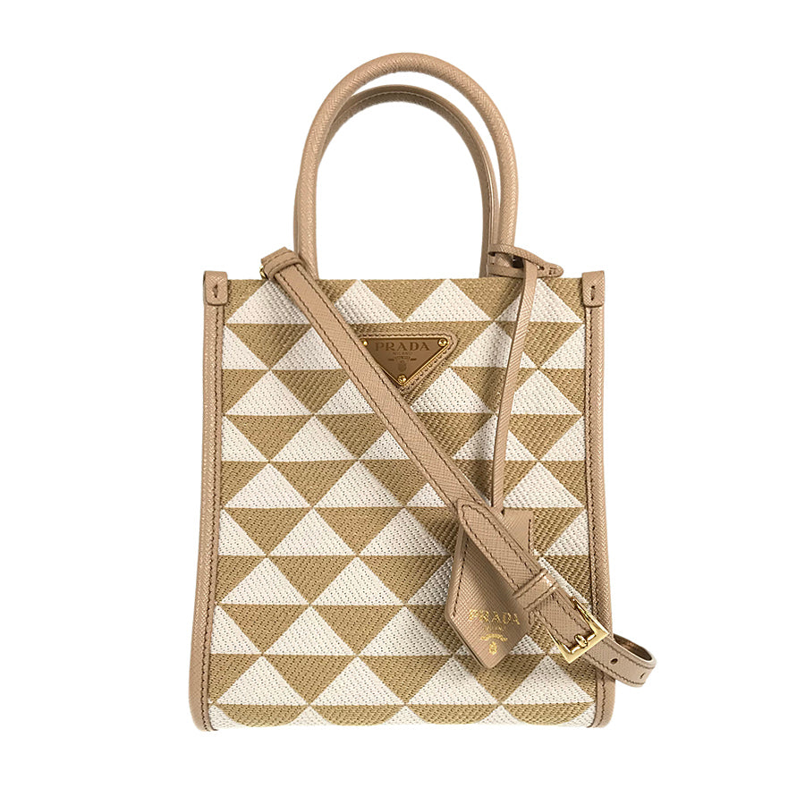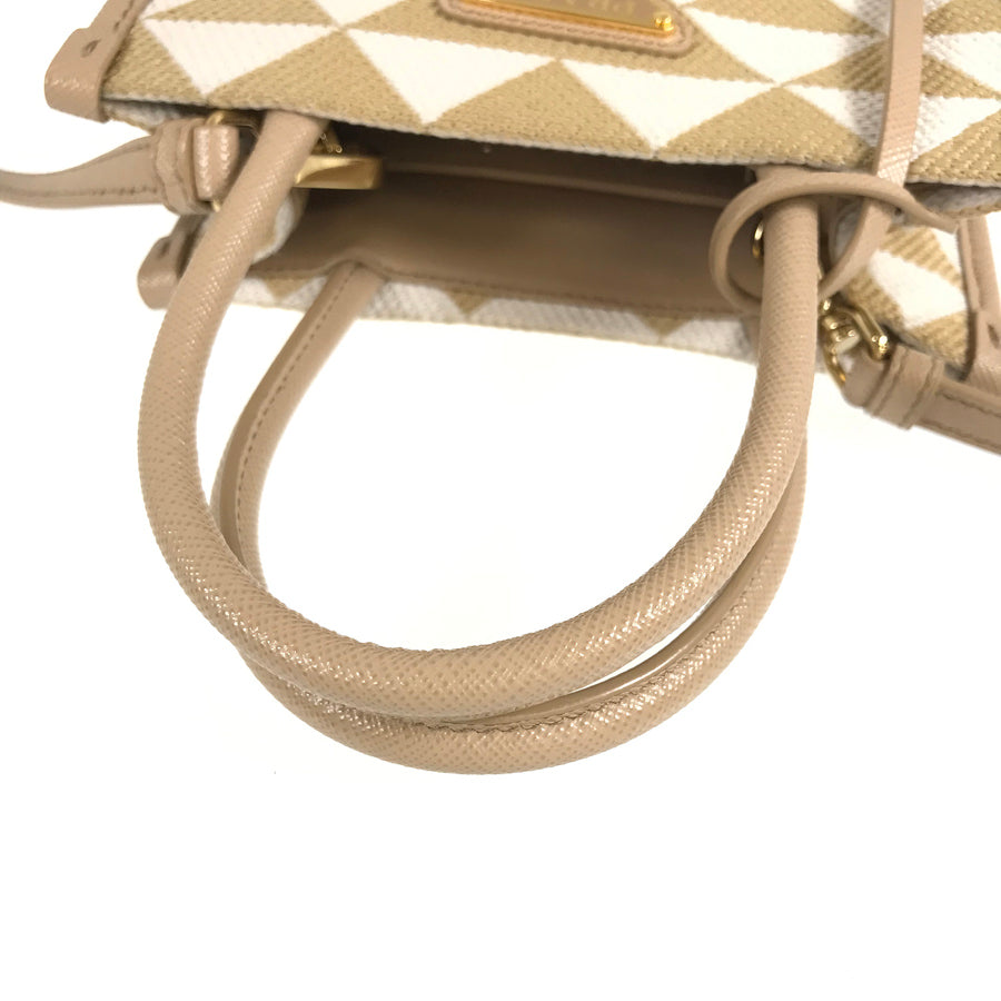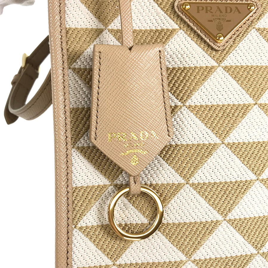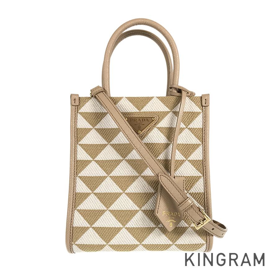 PRADA Saffiano Symbol Embroidered Fabric Mini 2WAY Shoulder Handbag