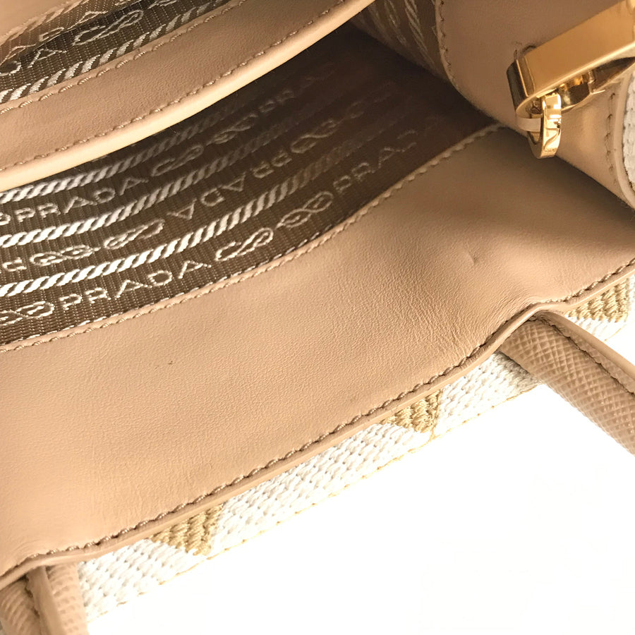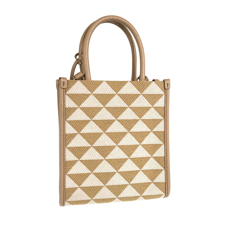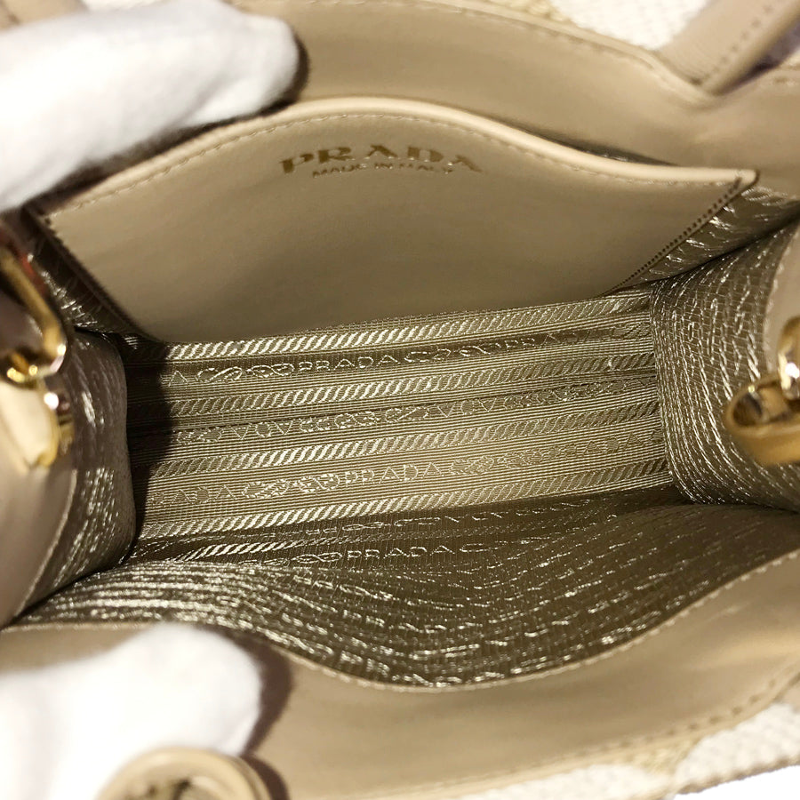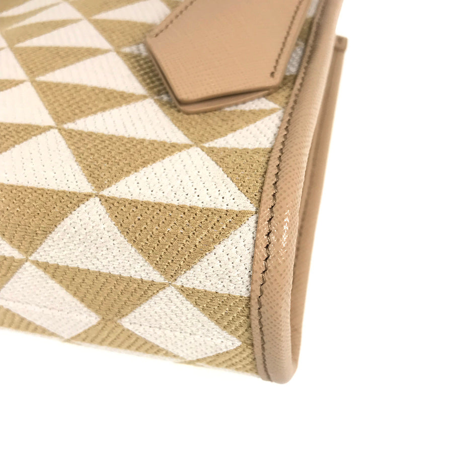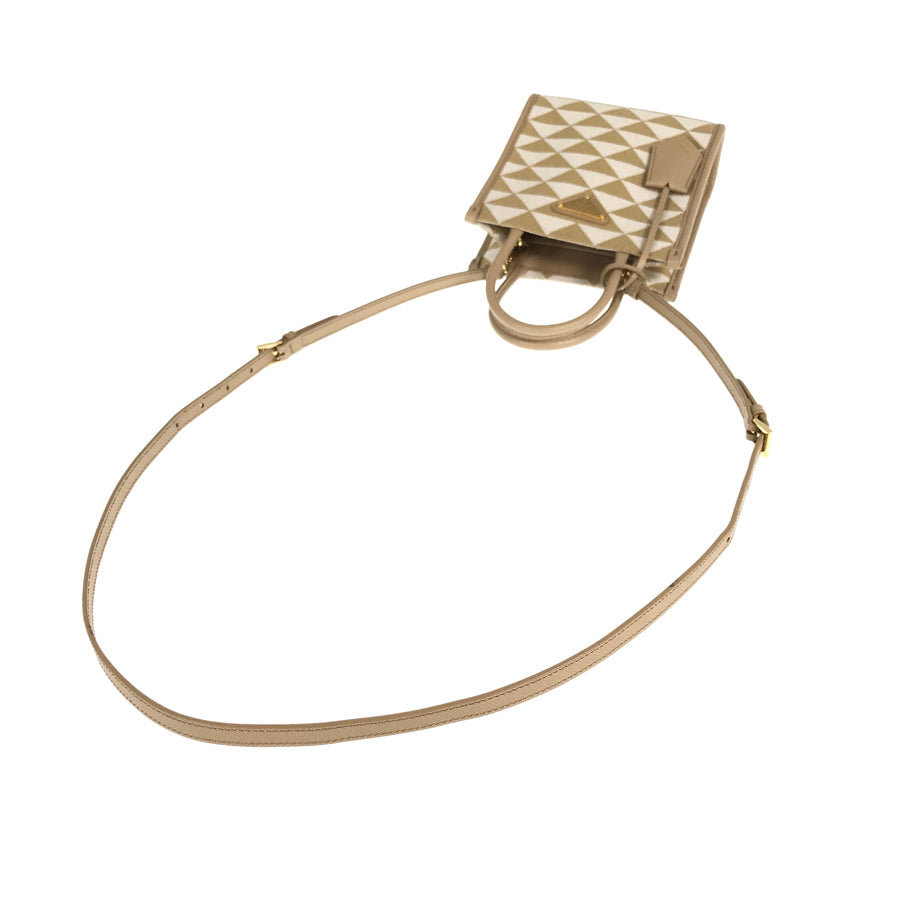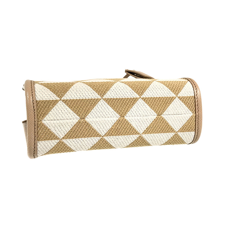 PRADA Saffiano Symbol Embroidered Fabric Mini 2WAY Shoulder Handbag