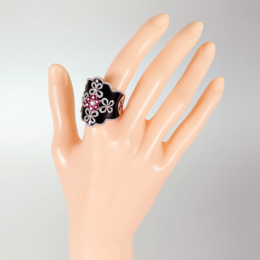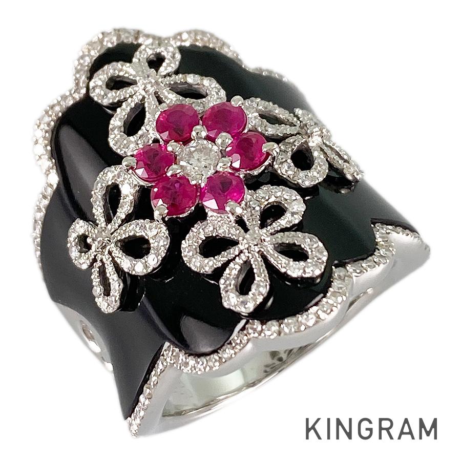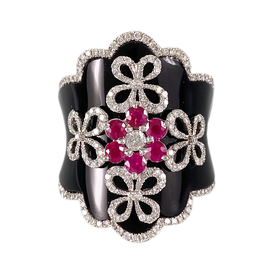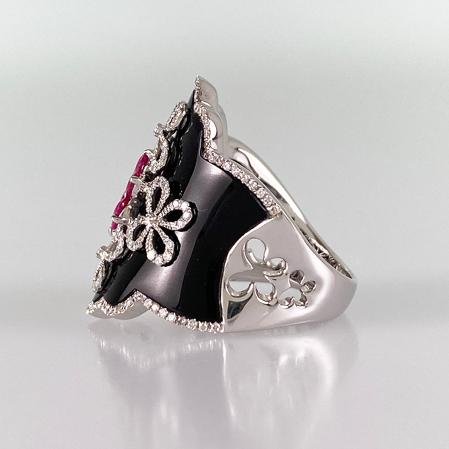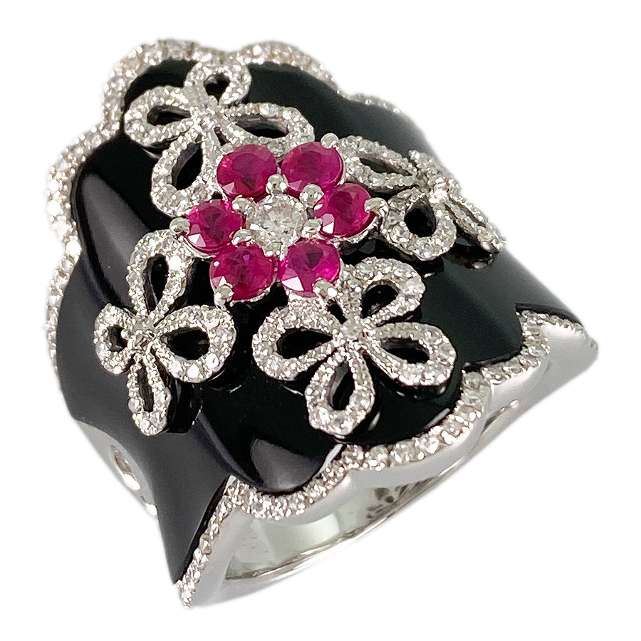Ring White gold Ruby Onyx Diamond