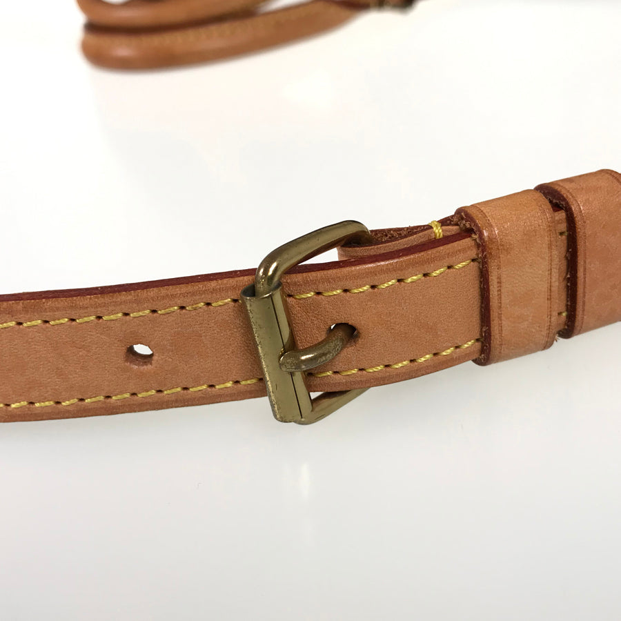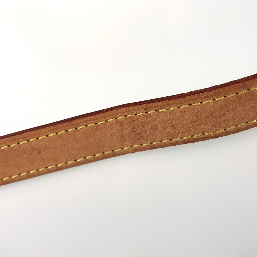 Strap: The tanned leather has some fading, stains, wrinkles, slight twisting, and scratches.