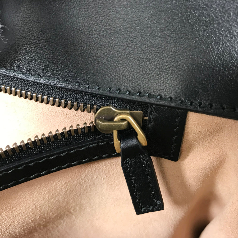 - Handle/Shoulder: There is a scrub wound on the leather on the right side of the base of the handle.